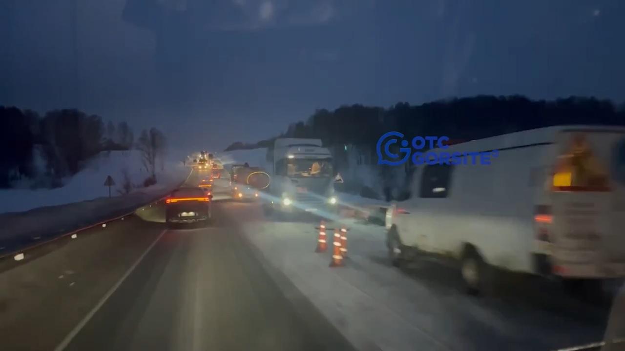Бензовоз, который слетел с дороги, достали с помощью крана. Движение в сторону Черепаново восстановлено.