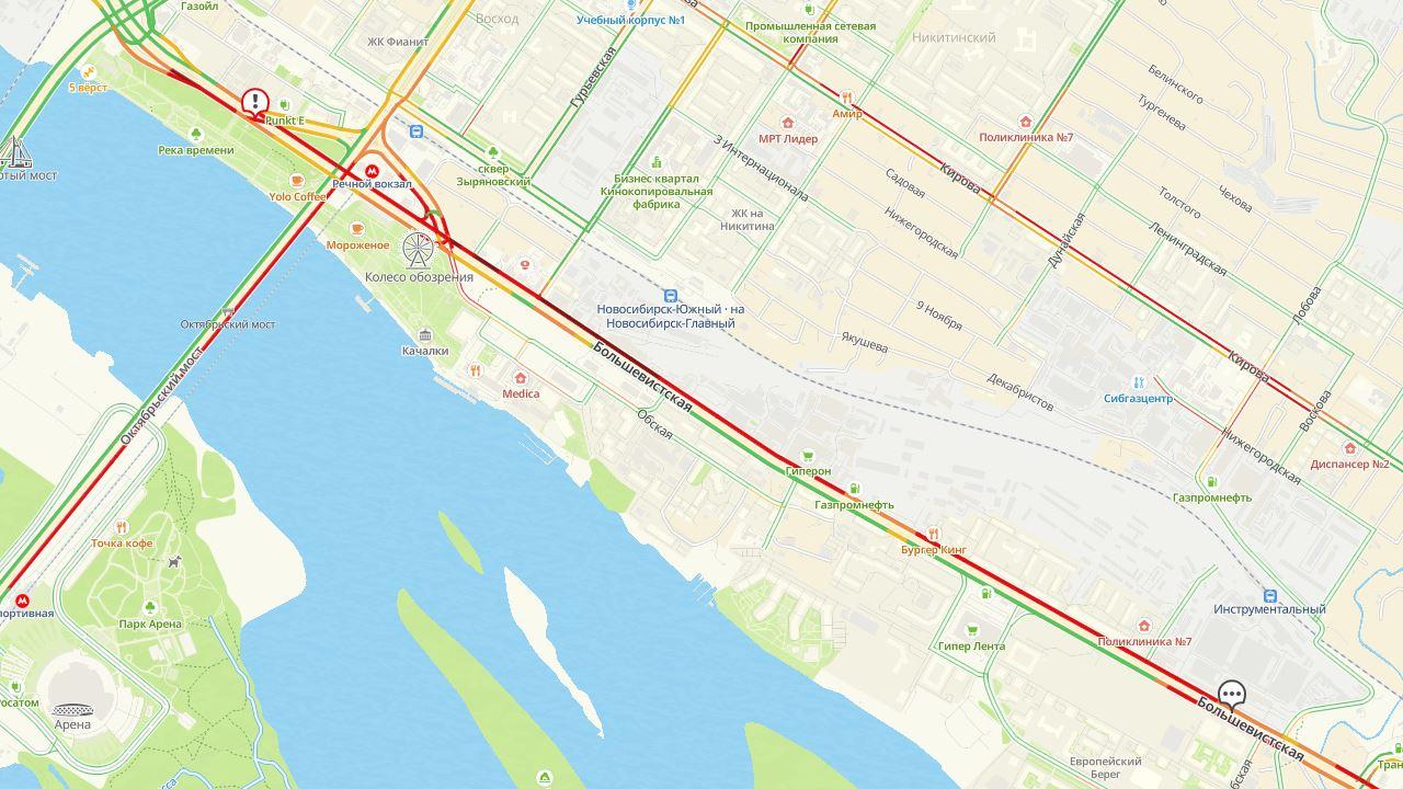 Крупные пробки также зафиксированы на 1-м Мочищенском шоссе, улицах Никитина, Кирова, Ипподромской, Станиславского, Ватутина, Сибиряков-Гвардейцев, на Октябрьском мосту и Советском шоссе.