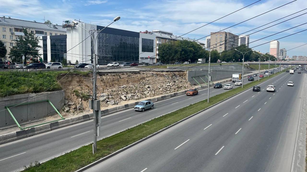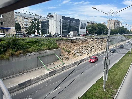 В апреле на Ипподромской магистрали обрушилась часть подпорной стены. Грохот разбудил жителей близлежащих домов, проезжую часть сразу же отгородили. Но сейчас на объекте никаких работ не ведут.