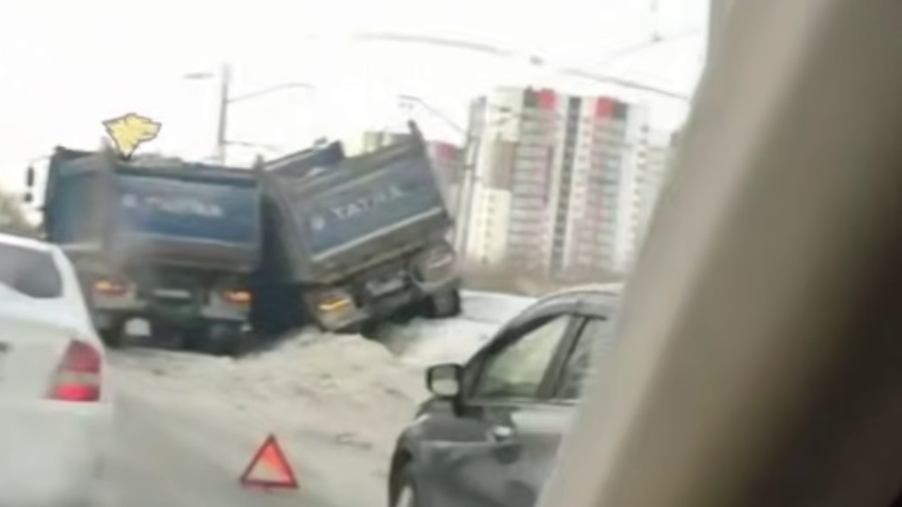 Один из грузовиков вытеснил другой на обочину и теперь удерживает его от опрокидывания. Об этом очевидцы происшествия сообщили в телеграм-канале АСТ-54 black.