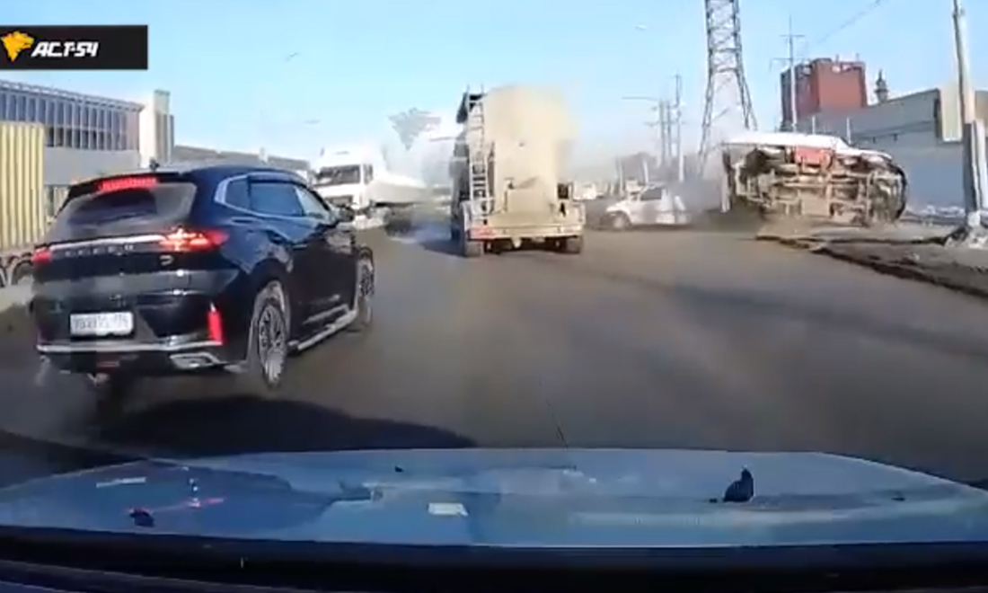 Один из автомобилей жёстко перевернулся. Инцидент попал на камеры.