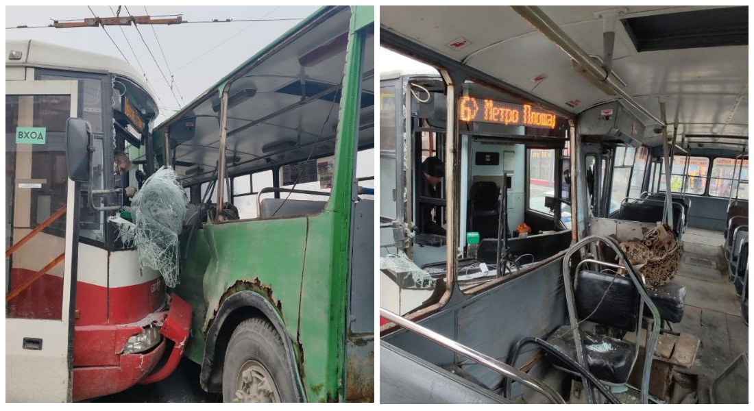 На фото с места происшествия видно, что трамвай врезался в бок троллейбуса, выбив окно рядом с пассажирским сиденьем. Сам трамвай также лишился лобового стекла. По данным ГИБДД города, троллейбус от удара врезался ещё и в попутно двигавшийся седан LADA Priora.