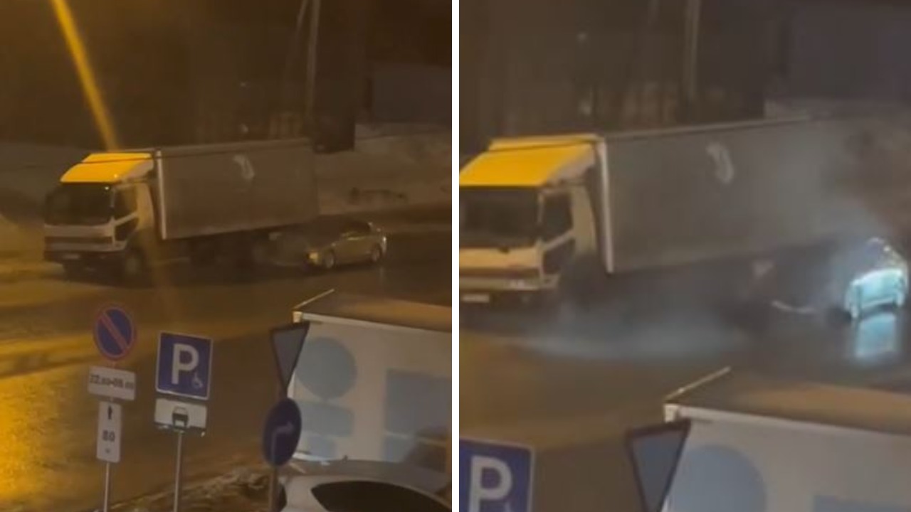 ДТП произошло ночью 19 февраля на улице Героев Революции в Первомайском районе. Автомобиль оказался под припаркованным большегрузом Mitsubishi Fuso.