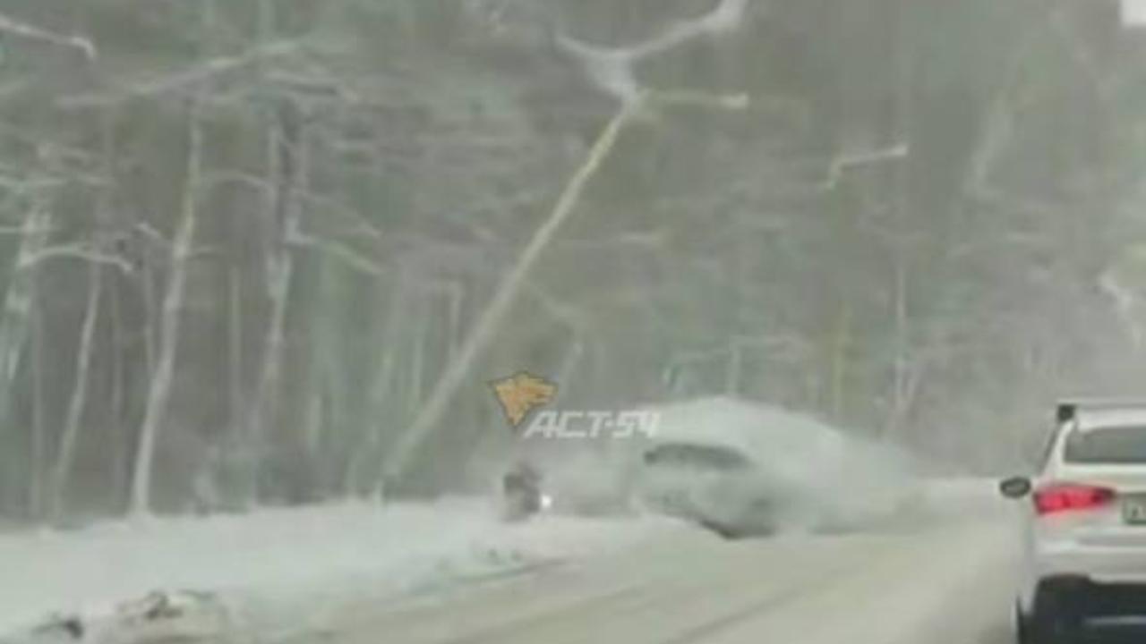 В Академгородке на Университетском проспекте водитель седана не справился с управлением на скользкой дороге и снёс фонарный столб. Машина вылетела в кювет.