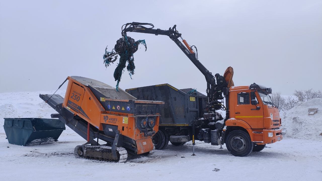 Хвойные деревья переработали на Гусинобродском полигоне, измельчив их шредером. Всего за февраль в регионе собрали 779 840 кубометров твёрдых коммунальных отходов – это вместимость 710 000 стандартных контейнеров.