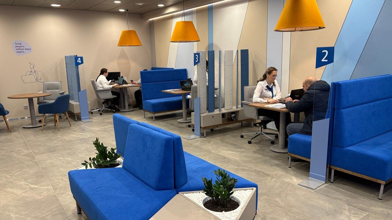 Что нового? Исчезли перегородки, появились зоны обслуживания с мягкой мебелью. Посетители через бесплатный Wi-Fi имеют возможность самостоятельно оформить документы в онлайн-банке.
