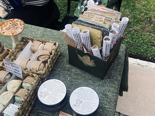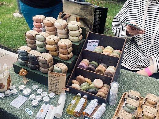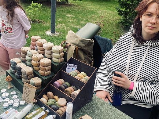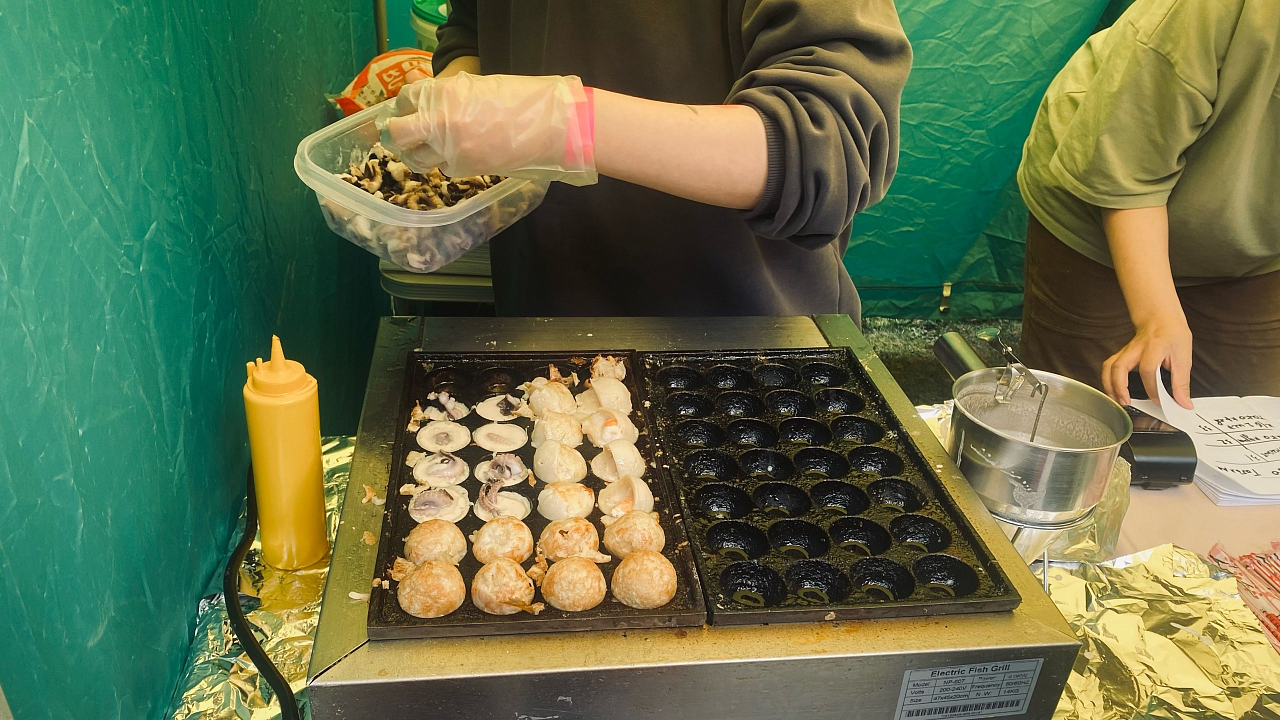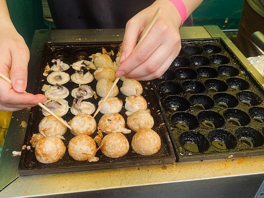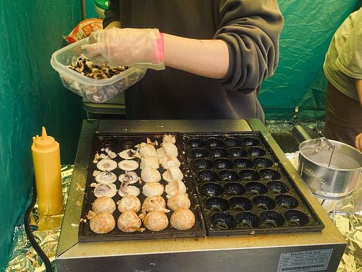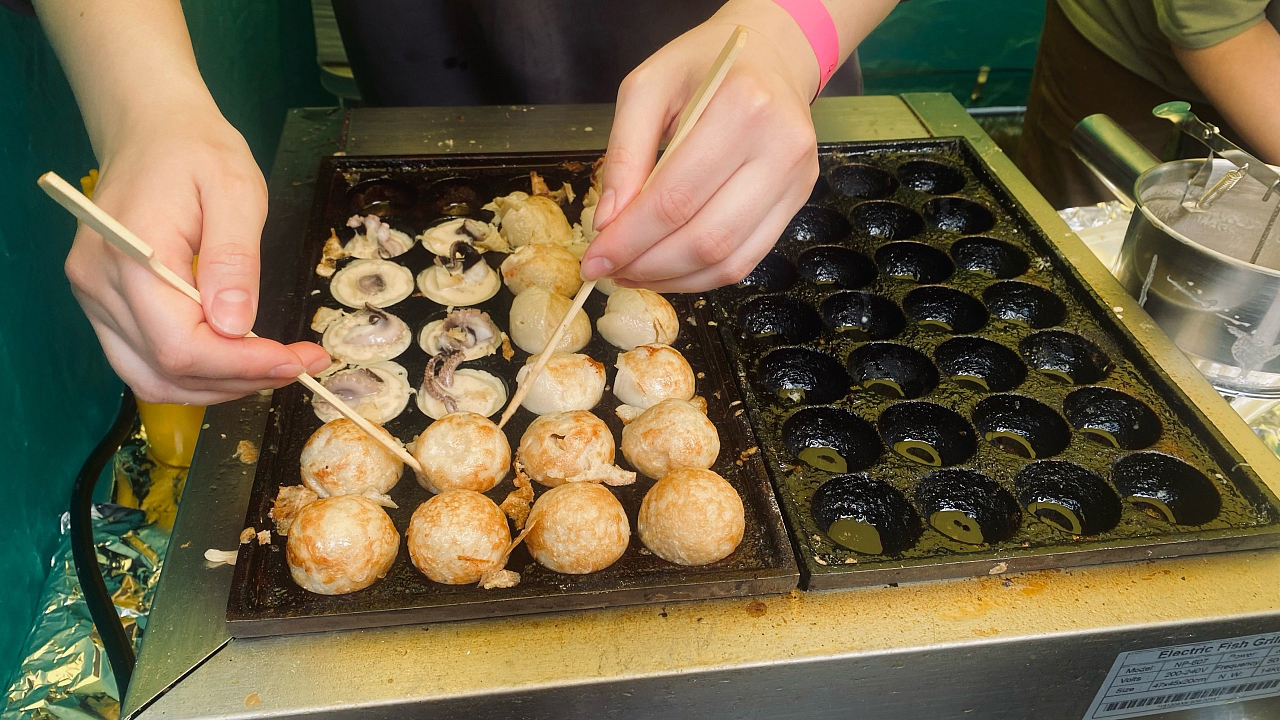 На улице около центра можно было попробовать японские блюда: таияки, онигири и такояки по 500-700 рублей, кофе, чай и пирожные моти. Также модницы могли приобрести китайские украшения.