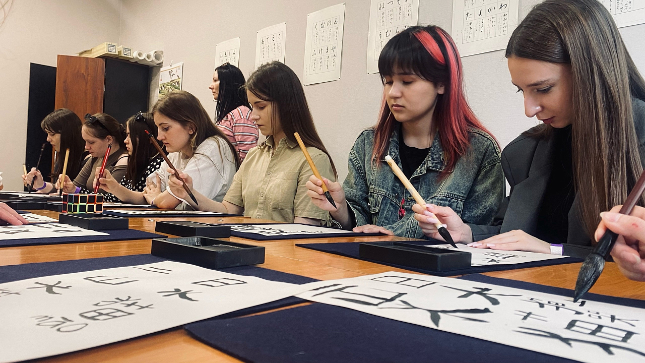 В Сибирь-Хоккайдо устроили выставку картин с китайскими котиками, историей японских городов и японских костюмов.