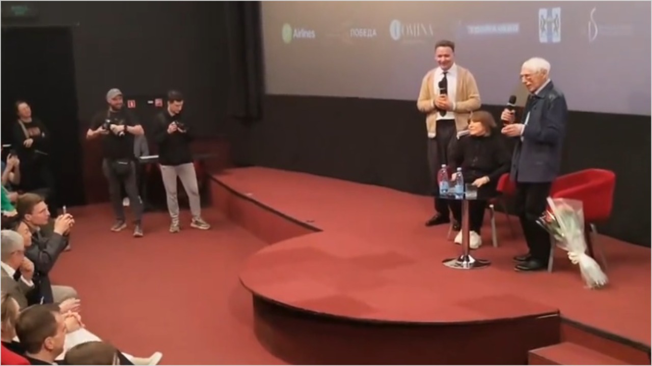 Вместе с ним перед зрителями предстали исполнительница главной роли в фильме Наталья Варлей и ведущий Александр Олешко.