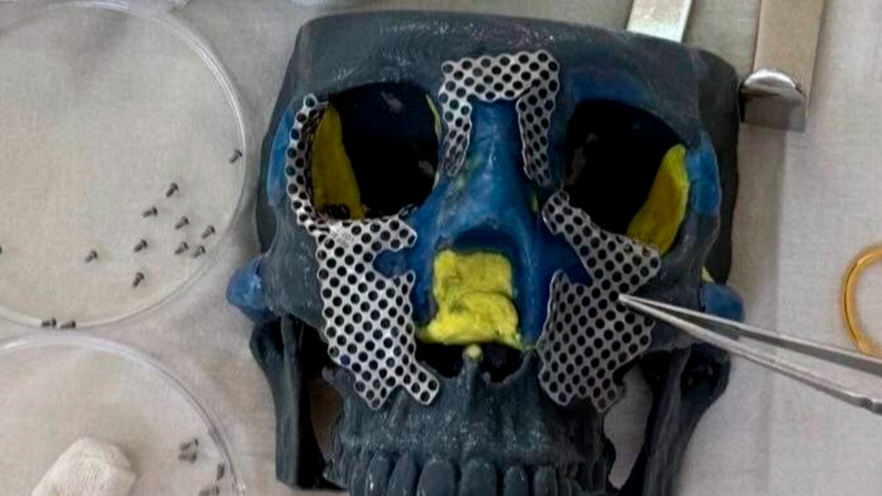 Для операции врачи использовали 3D-модель черепа и индивидуальные титановые пластины, изготовленные в стоматологической клинике. Хирурги собрали около 30 костных осколков, сохранили тройничный нерв и минимизировали доступы, чтобы оставить возможность для дальнейших пластических операций.
