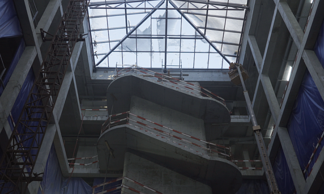 Новосибирский госуниверситет ведёт строительство второй очереди кампуса мирового уровня, в которую входит и корпус поточных аудиторий. Над атриумом корпуса недавно появилось стеклянное перекрытие в форме пирамиды
