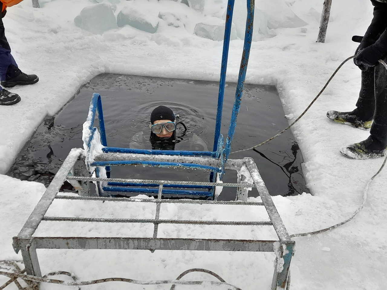 Кстати, в зимнее время водолазы не сидят без дела. Они проводят тренировочные спуски под лёд. Но когда люди выходят и выезжают на автомобилях на неокрепший лед и в итоге проваливаются в ледяную воду, тогда спасатели проводят уже рабочие спуски.