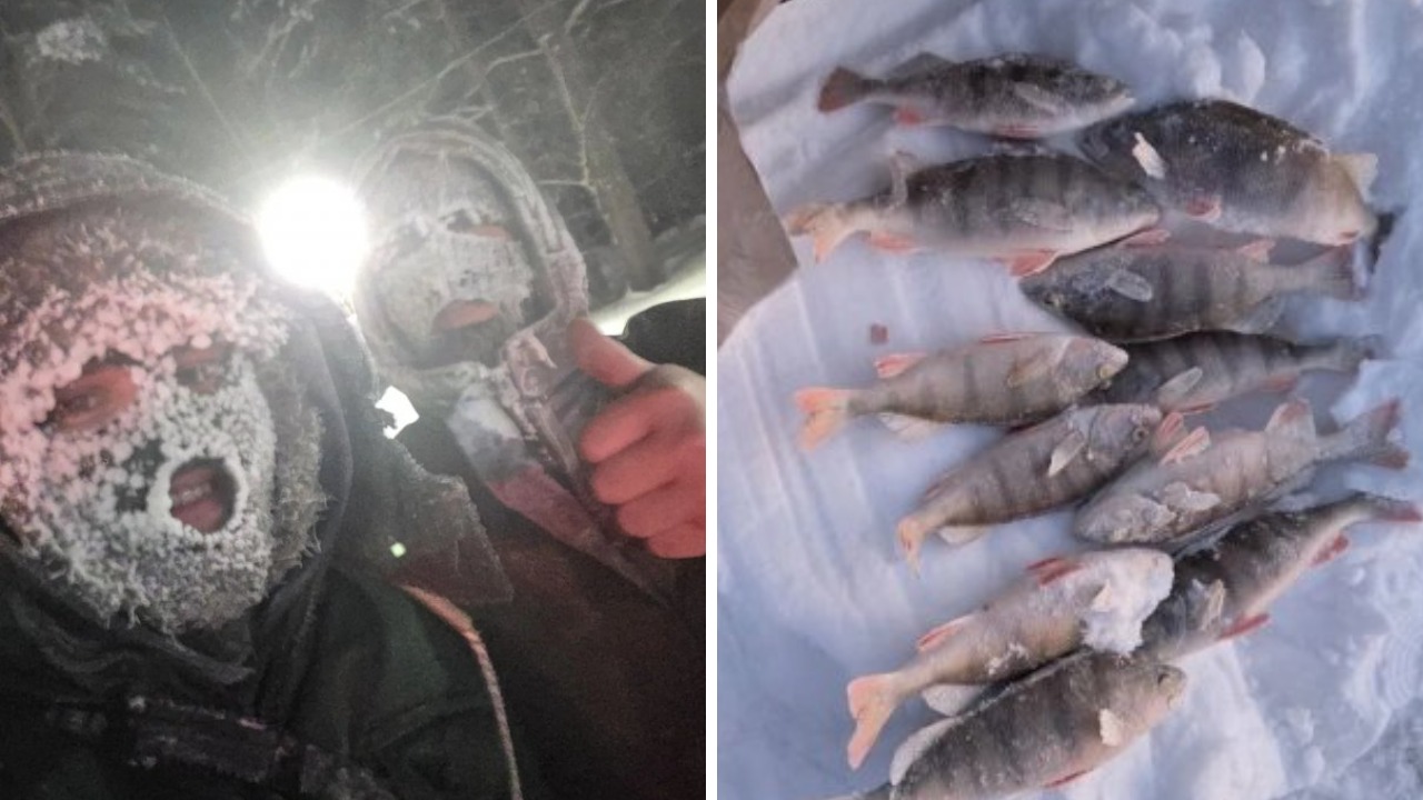 К своему рассказу рыбак прикрепил несколько фотографий. Одна из них особенно впечатлила его коллег по увлечению. На снимке запечатлены два улыбающихся рыбака на фоне заснеженного Обского моря. Их балаклавы полностью покрылись инеем. На другом кадре можно увидеть улов — 11 окуней.