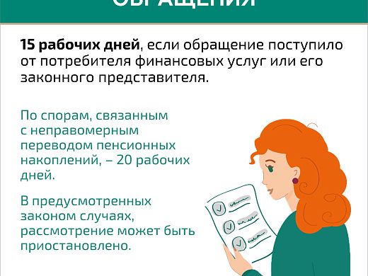 Сервис рассматривает обращения в течение 15 рабочих дней. Если спор связан с переводом пенсионных накоплений, срок увеличивается до 20 дней.