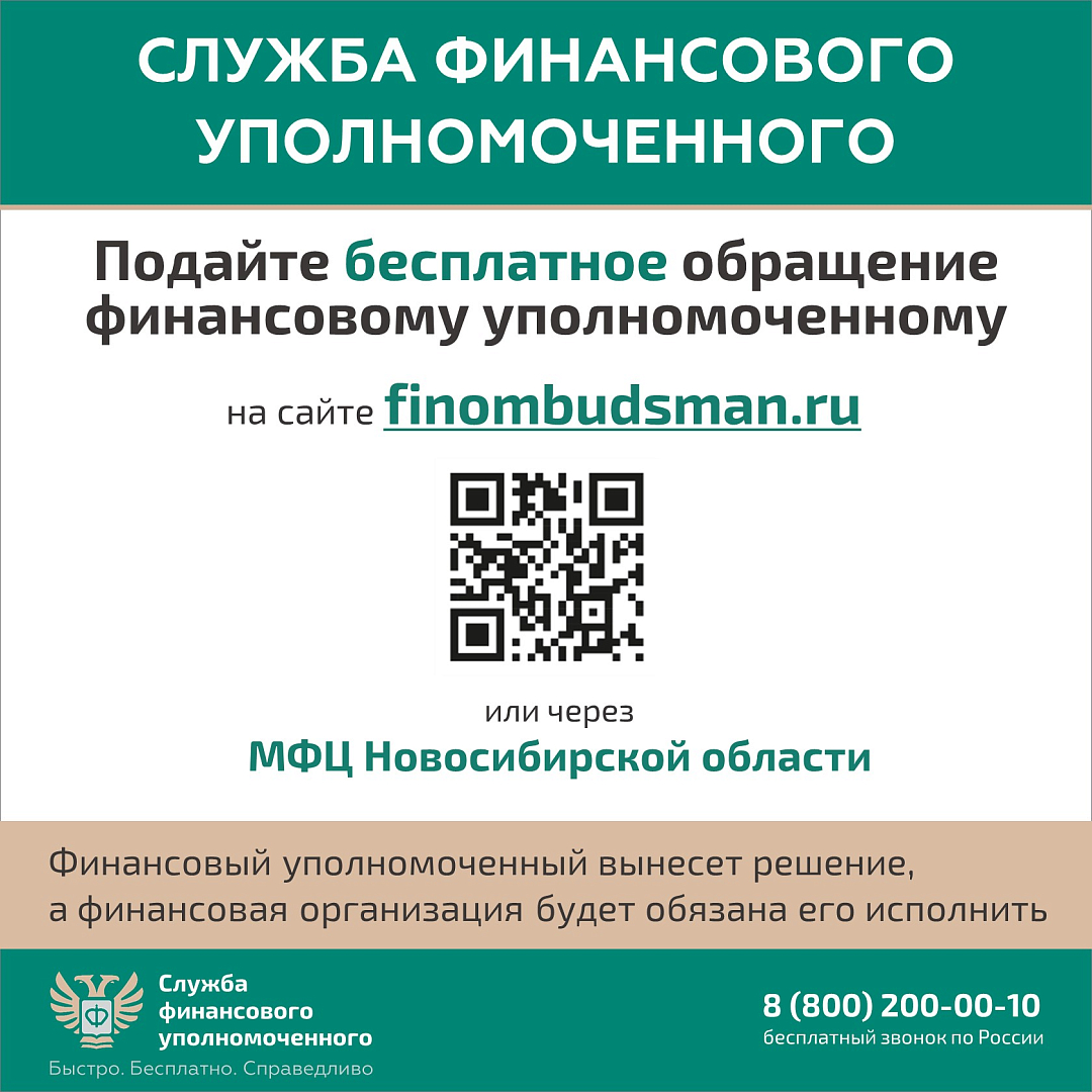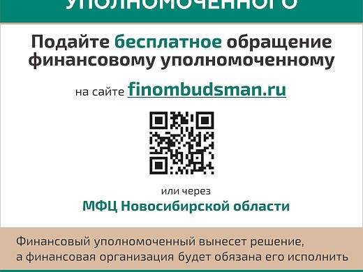 Обращение принимают через официальный сайт финансового уполномоченного или в многофункциональных центрах (МФЦ) Новосибирской области. Более подробную информацию вы можете получить по ссылке.