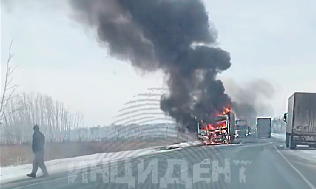 На трассе между Новосибирском и Омском в Убинском районе вспыхнул грузовик. Инцидент произошёл внезапно, и огонь быстро охватил транспортное средство.
