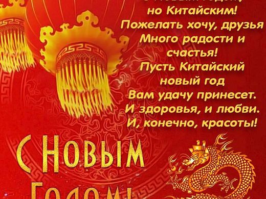 Поздравляем Вас с наступлением Нового года по китайскому календарю. Пусть эта дата войдёт в Ваш дом радостными новостями, счастливыми событиями, запомнится яркими эмоциями и принесет с собой любовь, добро и удачу.