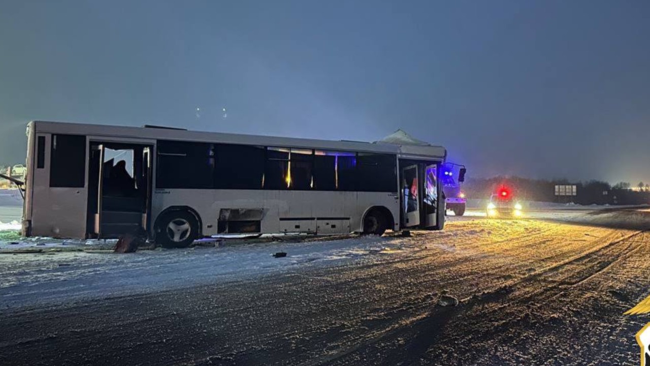 В автобусе в момент ДТП находились 17 работников склада Ozon. По предварительным данным ГАИ, в автобус марки «НЕФАЗ» на повороте врезался большегруз. Обстоятельства аварии выясняются.