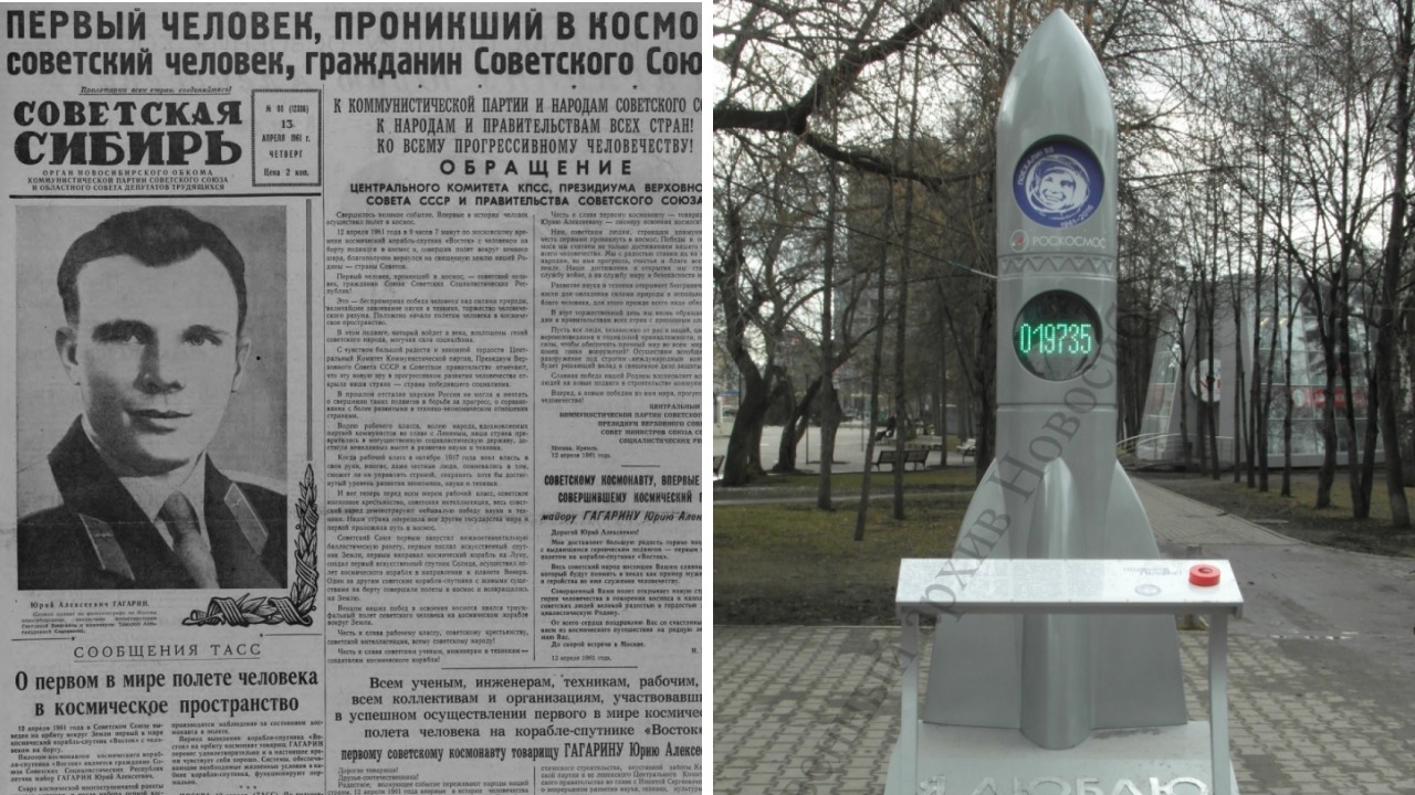 Среди материалов — первая полоса газеты «Советская Сибирь» от 13 апреля 1961 года. Она посвящена полёту Юрия Гагарина с заголовком «Первый человек, проникший в космос, — советский человек, гражданин Советского Союза!».