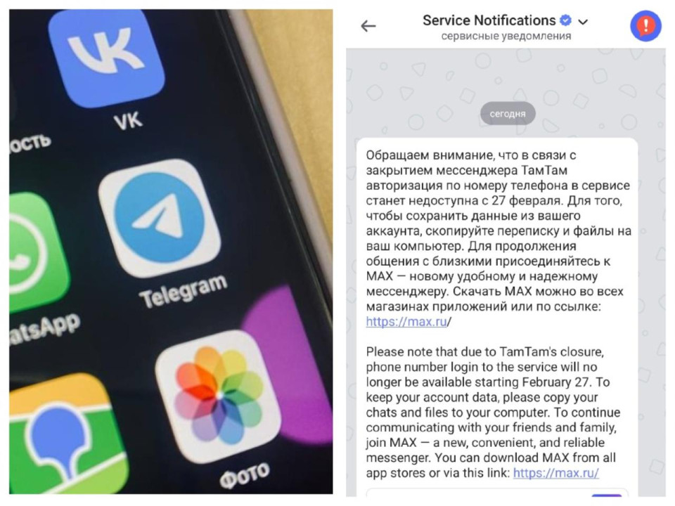 В 2025-2026 годах Роскомнадзор начал блокировать звонки в WhatsApp и Telegram, объясняя это борьбой с терроризмом и мошенничеством. «ТамТам»/MAX в этом контексте рассматривается как отечественное решение. Несмотря на доступность ТамТам, популярностью в России он не особенно пользовался. Ночью с 17 на 18 февраля россиянам в мессенджер стали приходить сообщения, где призывали переходить в MAX, так как с 27 февраля мессенджер ТамТам закрывается.