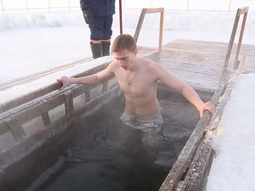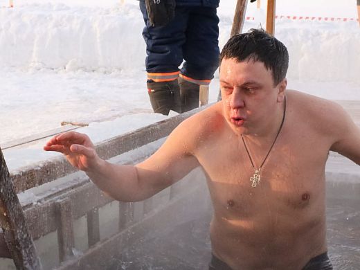 С 10 утра возле проруби собрались церковнослужители и все желающие окунуться в ледяную воду. Именно этот ритуал, считают православные, может смыть грехи и очистить душу человека. Собственно, поэтому купель сначала освятили, а только потом к ней пустили новосибирцев.