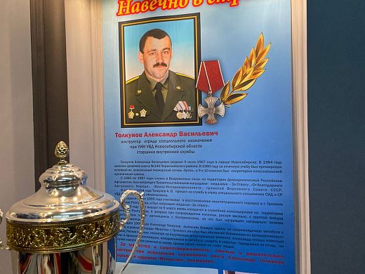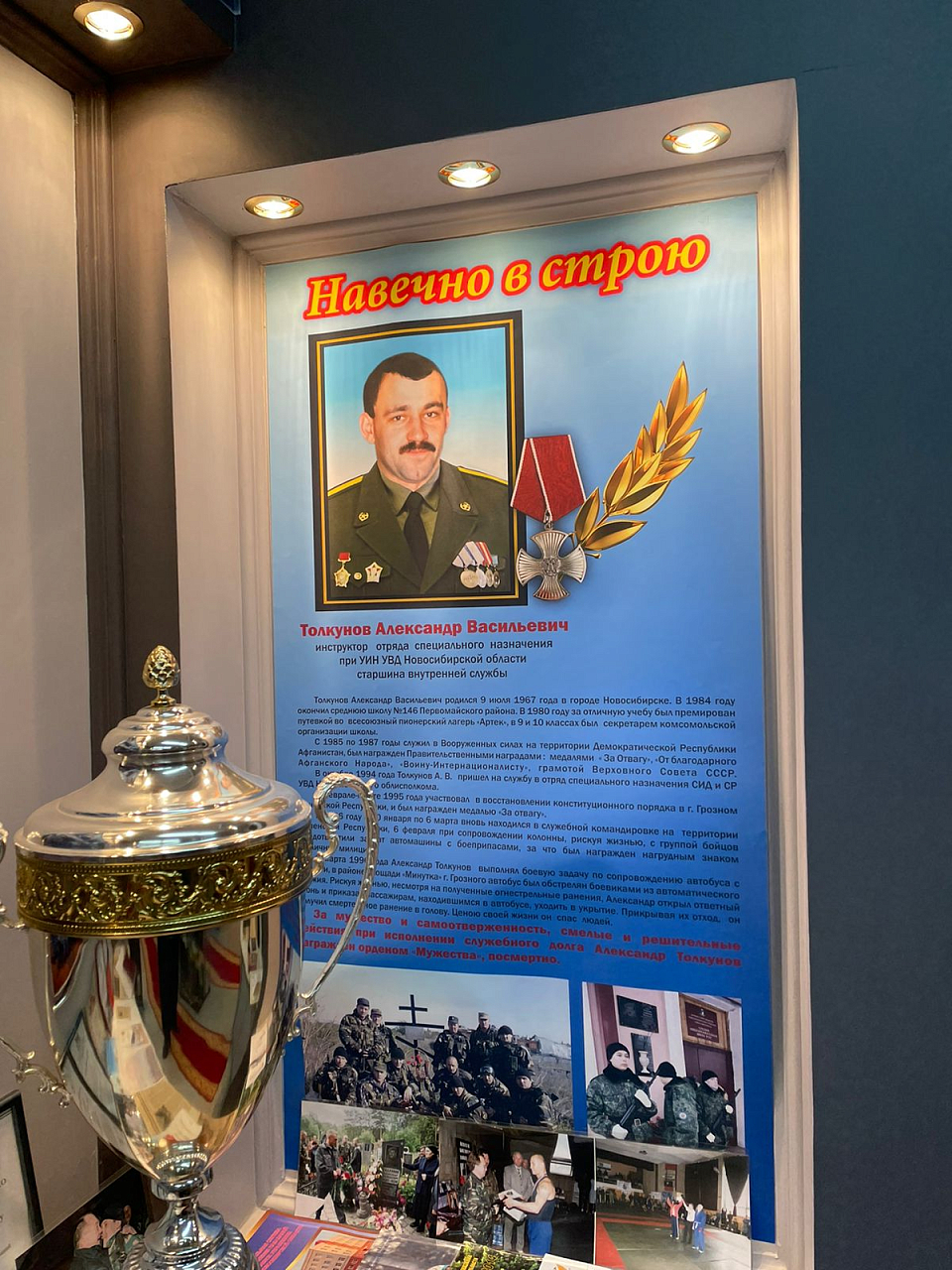 6 марта 1996 года во время служебной командировки в Республику Чечня погиб боец отряда специального назначения «Корсар» ГУИН Минюста России по Новосибирской области, старшина внутренней службы Александр Толкунов.