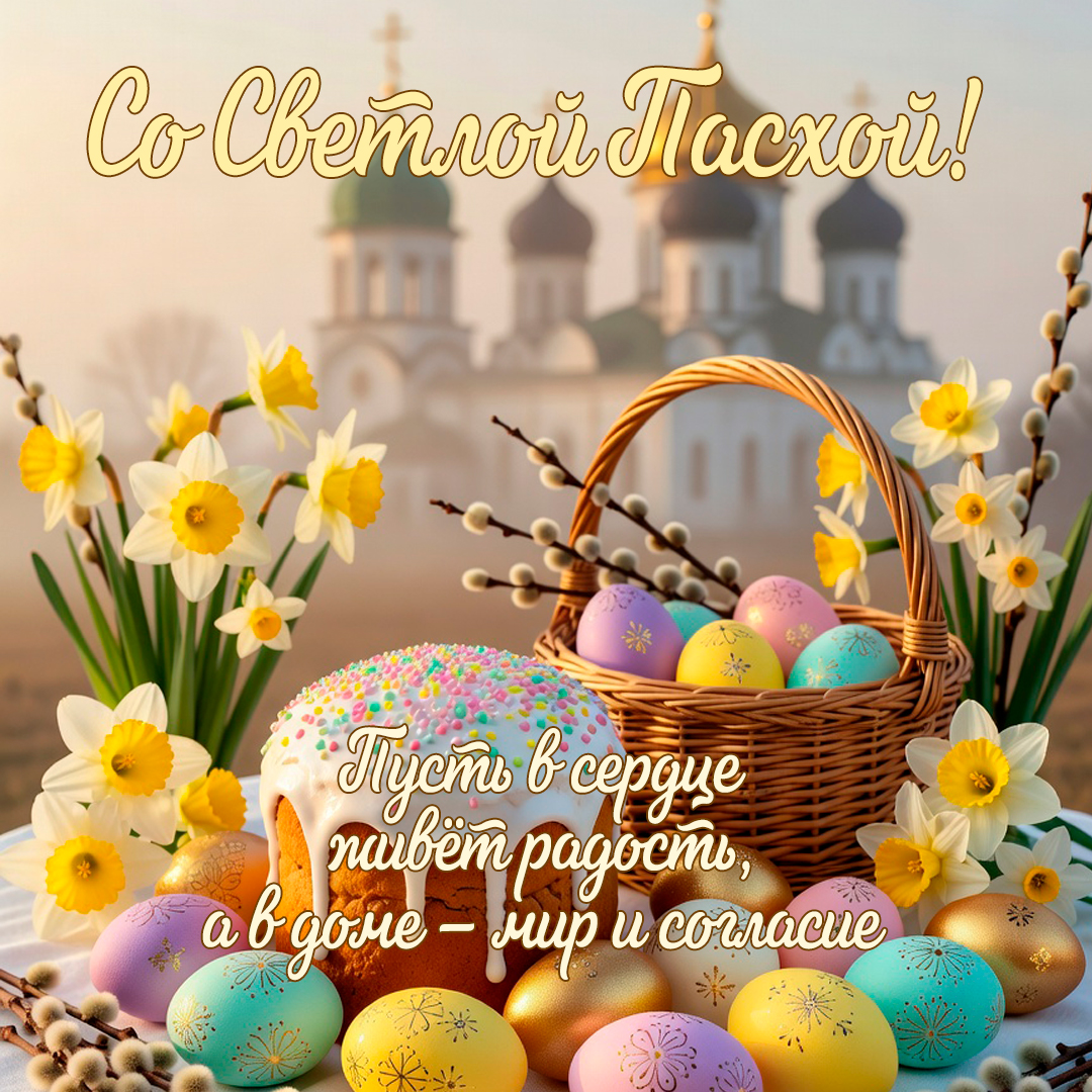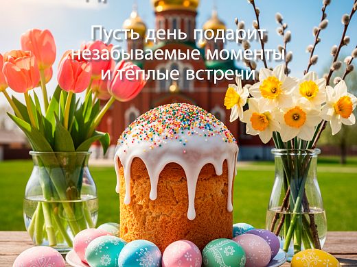 «В этот светлый день хочу пожелать вам мира в душе и гармонии в семье. Пусть пасхальное чудо коснется каждого из нас, подарив надежду, вдохновение и силы для новых свершений. Счастья, добра и бесконечной любви! Воистину Воскресе!»