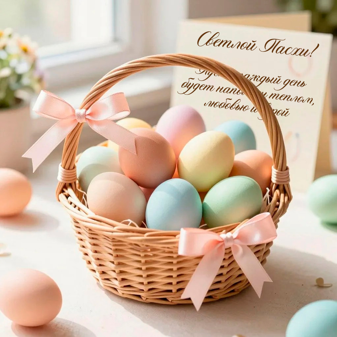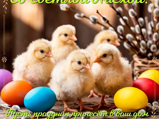 «Светлой Пасхи! Пусть этот святой праздник наполнит ваш дом уютом, сердцем — любовью, а душу — спокойствием. Желаю, чтобы каждый день приносил маленькие радости, а рядом всегда были люди, которые согревают теплом своих сердец. Христос Воскресе!»