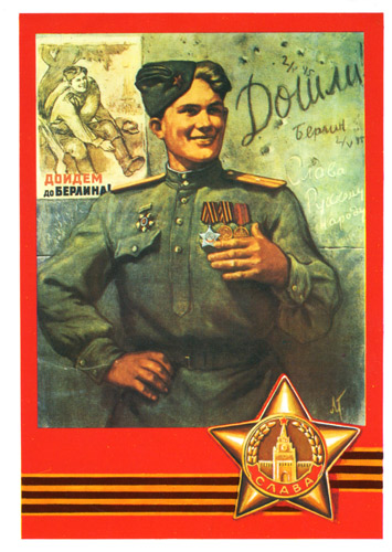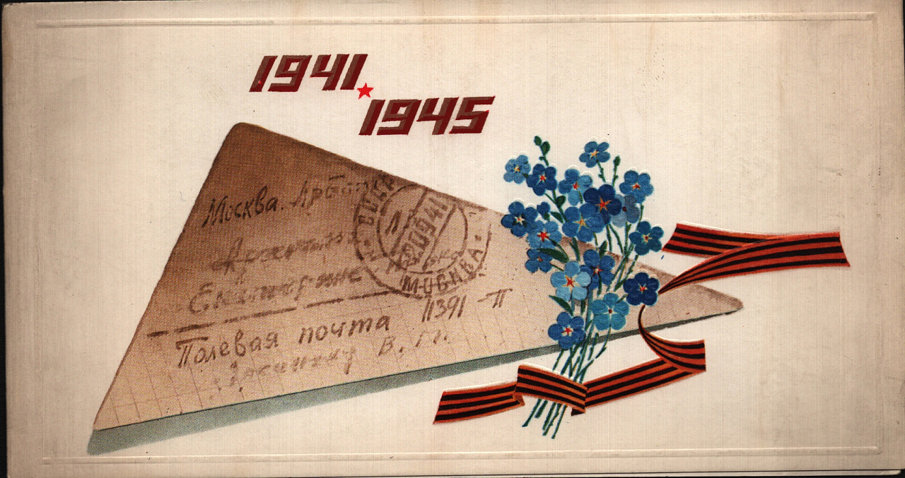 Эти открытки украшены лозунгами, прославляющими мужество и стойкость народа.