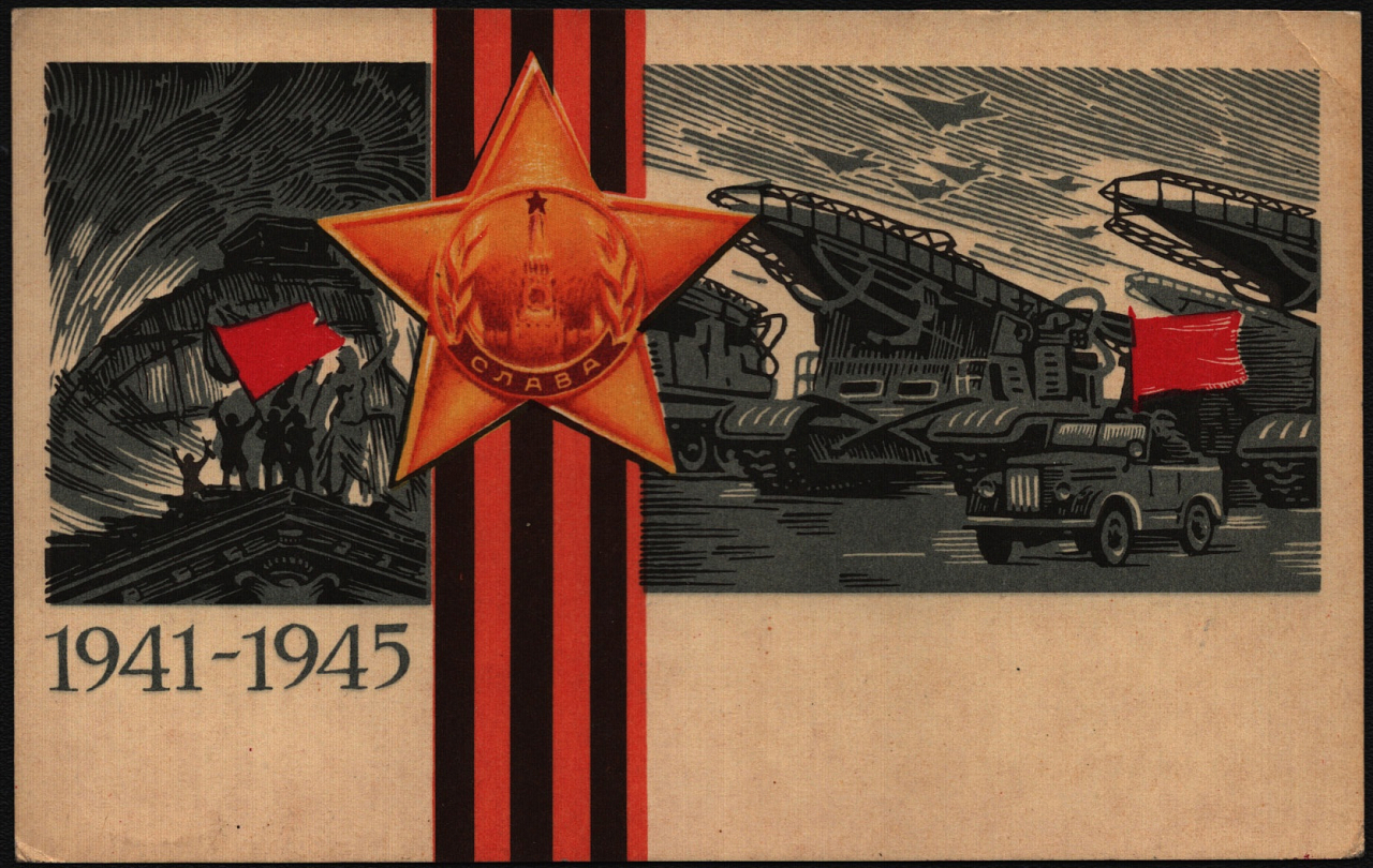 Каждый элемент на открытках символизирует важные моменты Великой Отечественной войны.