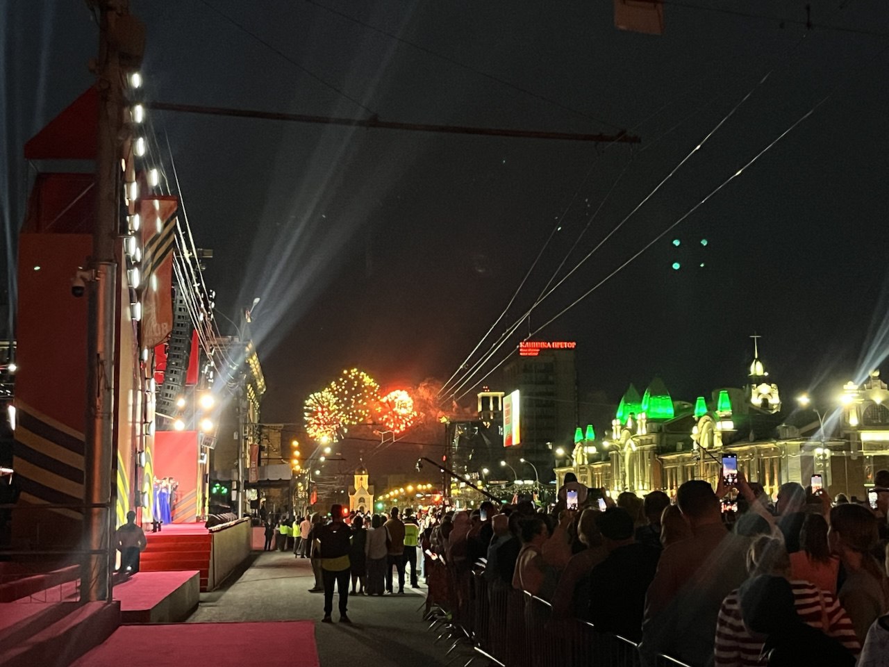 В 20:00 на площади Ленина начался праздничный концерт, после которого, в 21:40 можно было посмотреть светомузыкальное представление.