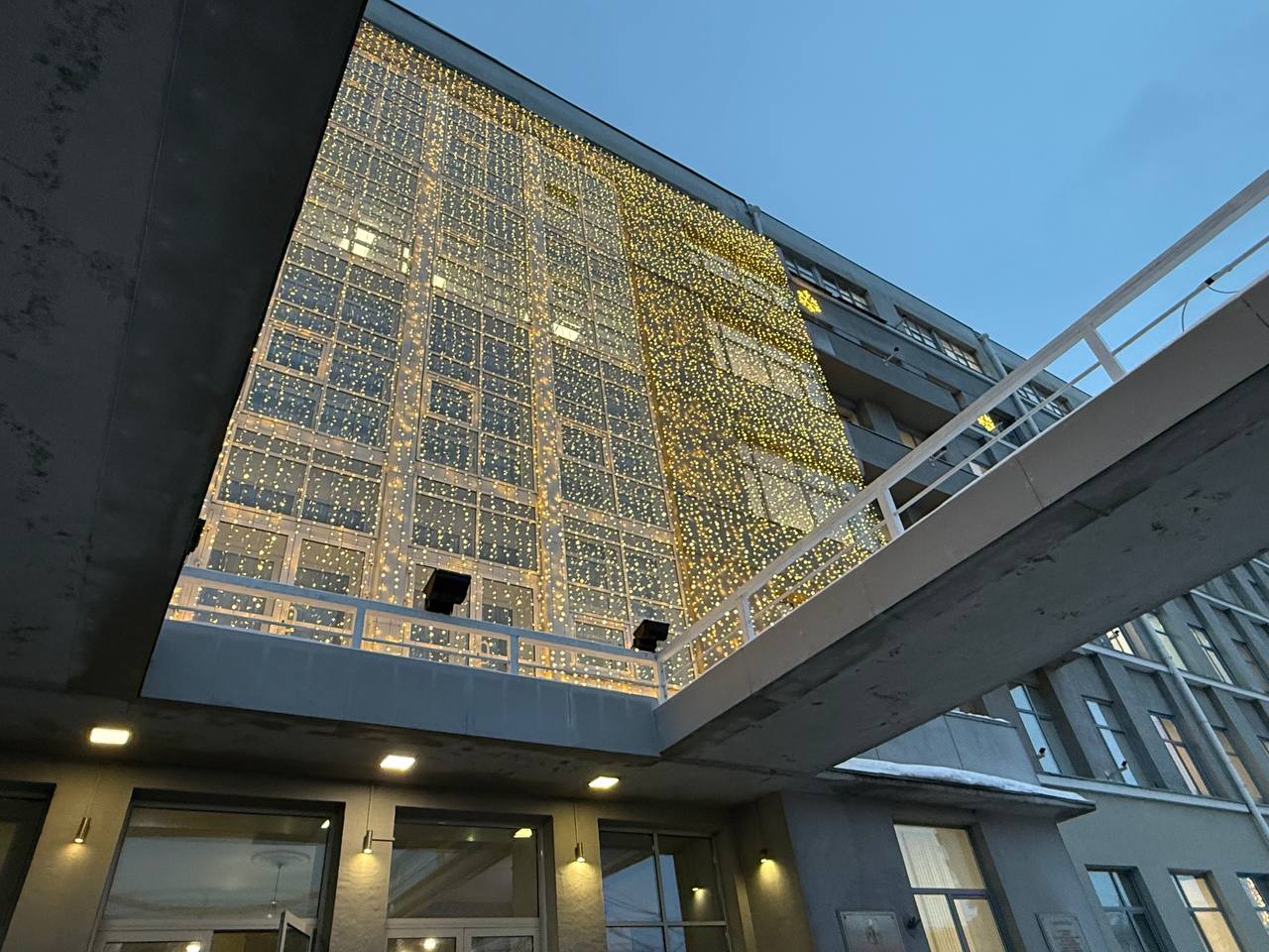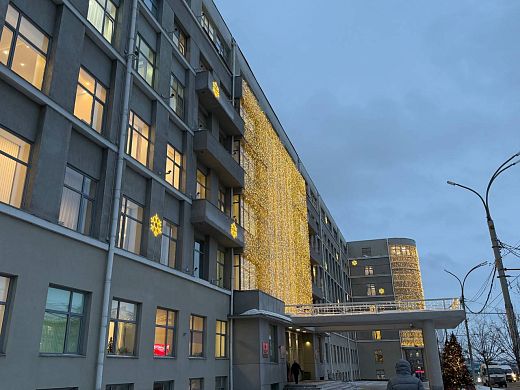 Сверкает этой зимой и здание правительства Новосибирской области. На стенах — светящиеся снежинки и новогодний дождик.