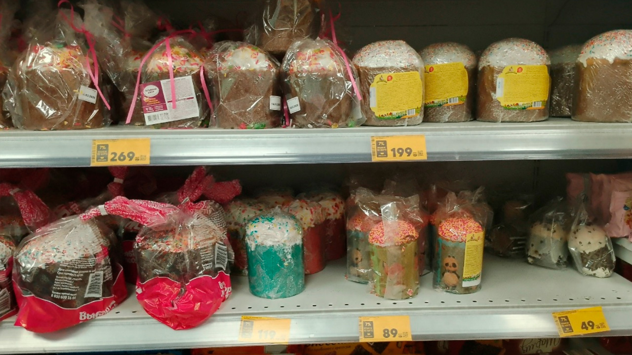 В магазинах Новосибирска начали продавать куличи и товары для Пасхи. Цены на праздничные угощения и декор варьируются от бюджетных до премиальных. До праздника осталось чуть больше недели.