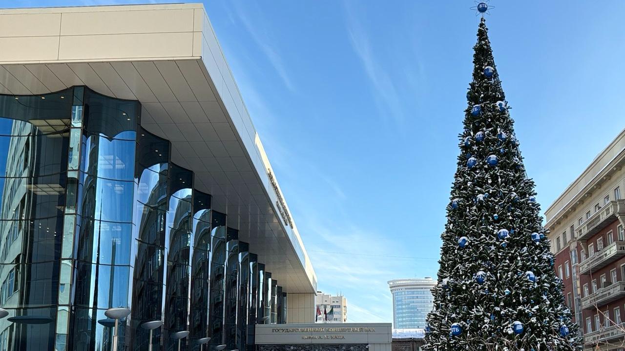 Праздничное дерево установил ВТБ. Это яркое украшение стало сюрпризом от банка жителям столицы Сибири.