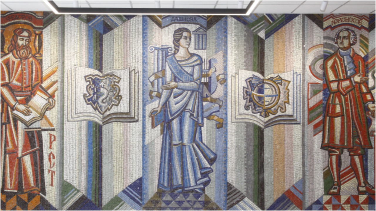 Главной целью стала реставрация мозаичных панно, созданных в 1980-х годах. Архитектор Полина Жиголкина очистила поверхность мозаик и восстановила утраченные элементы. Теперь посетители смогут увидеть портреты Ивана Фёдорова, Михаила Ломоносова, Дмитрия Менделеева, Софьи Ковалевской и других выдающихся учёных в их первозданной красоте. Эффект усиливает новая система точечного освещения.