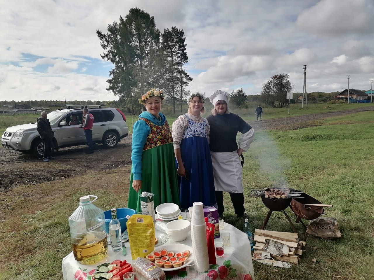 В самом отдалённом к Новосибирску районе люди решили празднично встретить первый день выборов. Недалеко от участков звучат песни, а избирателей угощают блинами.