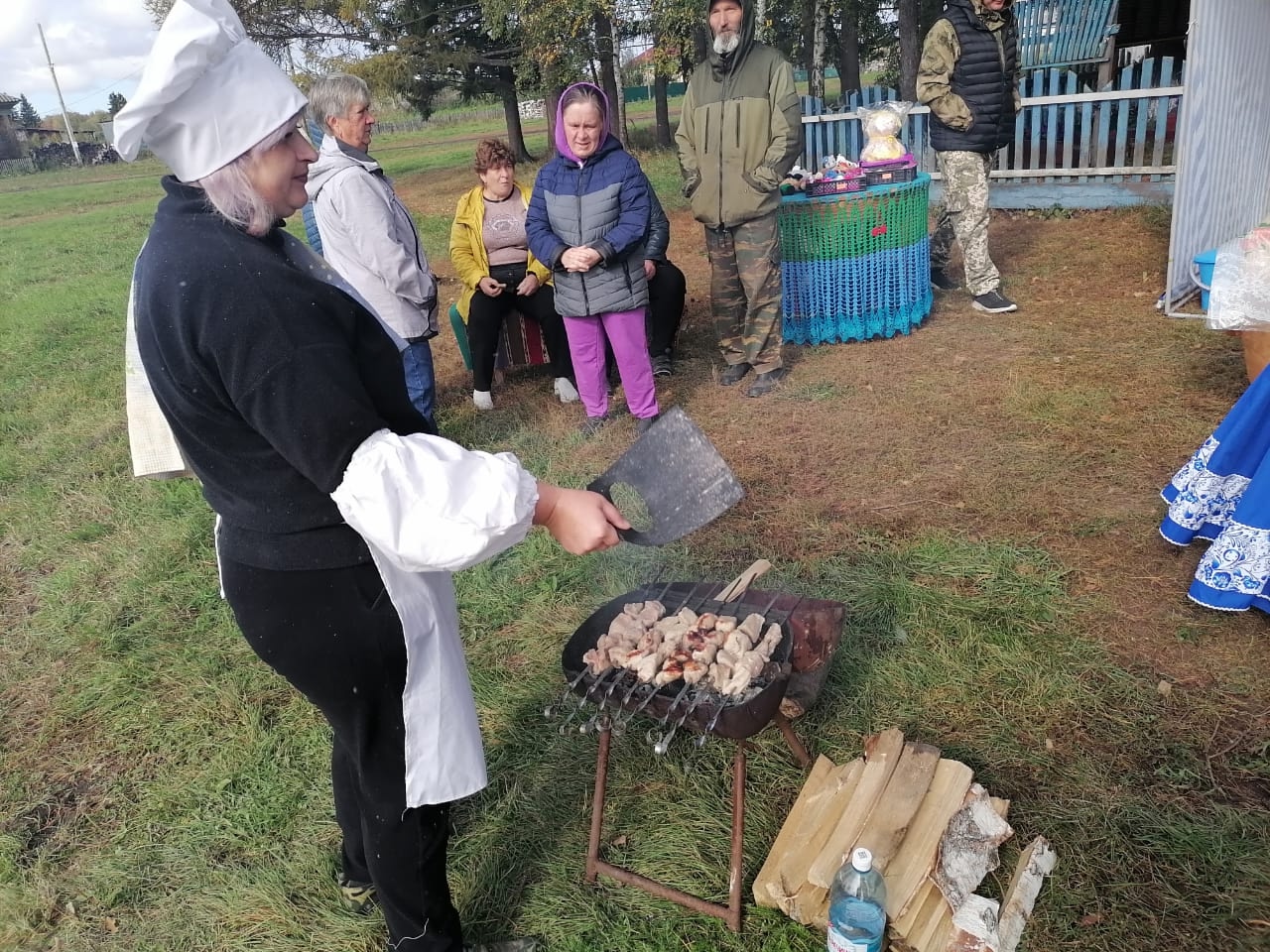 А некоторые даже жарят шашлык. Вокруг звучит весёлая музыка, некоторые участники мероприятия согреваются танцами.