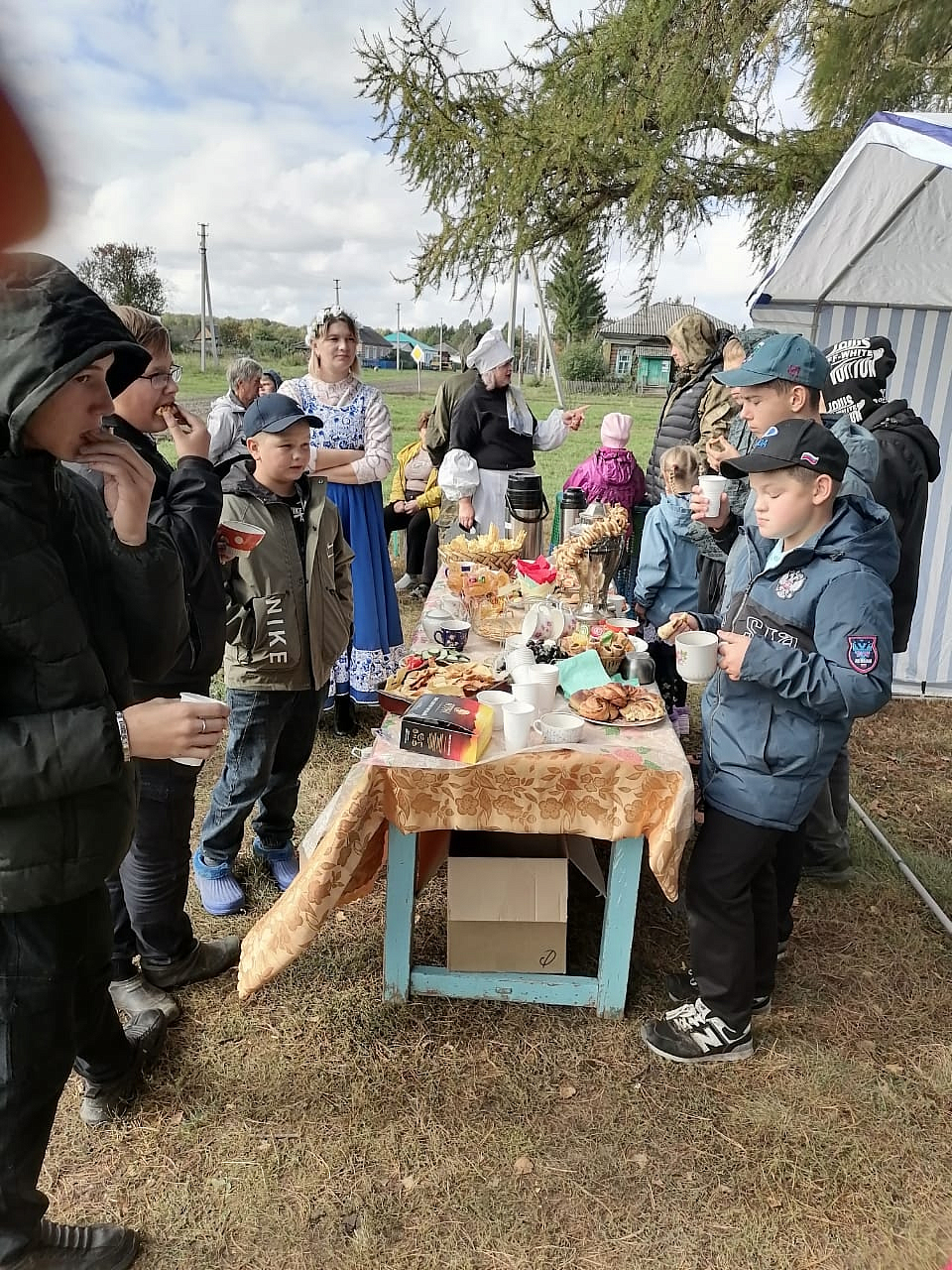В населённых пунктах Кыштовского района организовали праздничную программу: на небольших ярмарках можно приобрести авторские изделия. Жителям предлгают горячий чай с блинами и бутербродами.