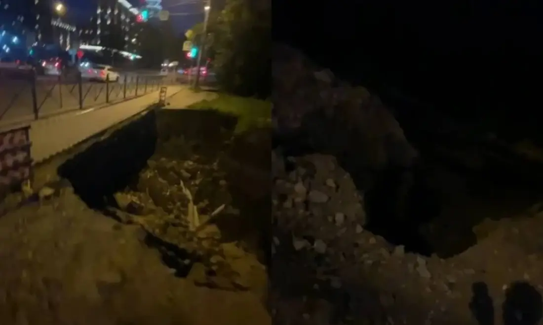 Как сообщил руководитель городского департамента транспорта Иосиф Кодалаев, место оградили сигнальной лентой, так как есть риск обрушения части тротуара.