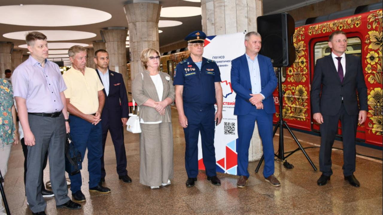 На станции «Площадь Гарина-Михайловского» открыли патриотически оформленный вагон метро. Мероприятие посетили зампред Правительства НСО Роман Бурдин и участники программы «Герои НовоСибири».