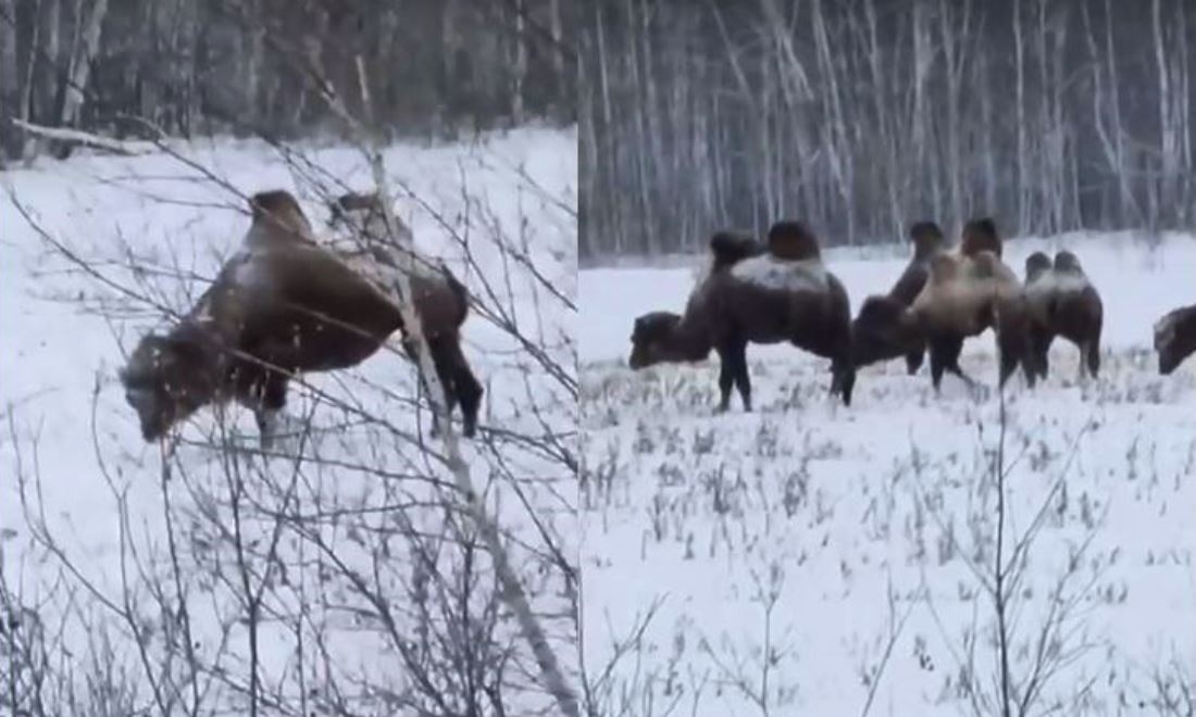 В Татарском районе замечены верблюды. Видео с двугорбыми животными, гуляющими по сугробам, уже набрало более 10 тысяч просмотров.