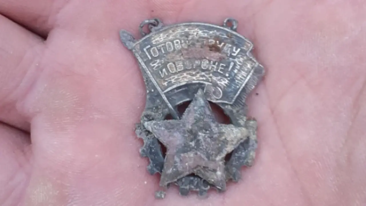Также волонтёры нашли фрагменты радиостанций, полевой телефон, компасы, бинокли, обрывки газет и значок «Готов к труду и обороне» (ГТО).