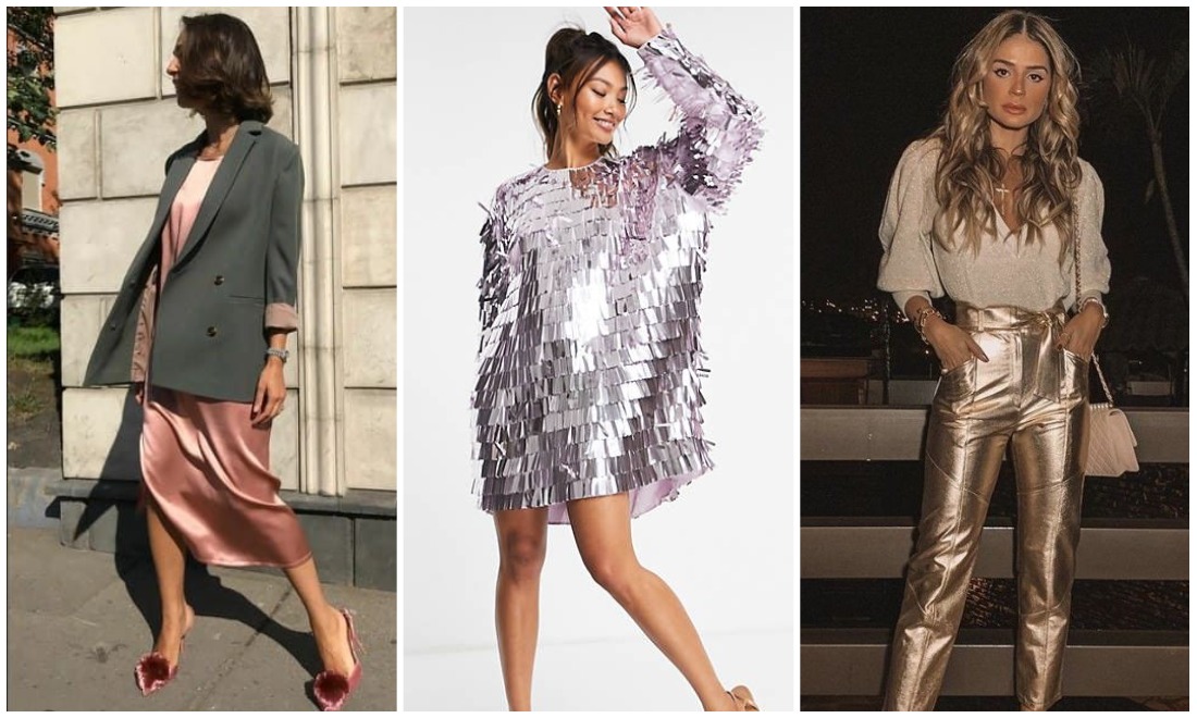 Ещё один актуальный стиль – металлик. В моде нарядные платья, брюки и юбки цвета металлик, туфли и ботильоны с такими вставками тоже могут дополнить комплект.