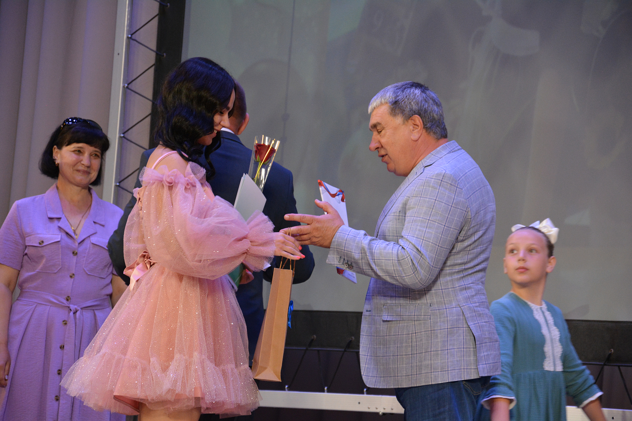 Вручили ученикам почётные грамоты и премии главы округа, а также выпускники получили благодарности от депутата Государственной Думы Александра Аксёненко и ценные подарки от Александра Кулинича.