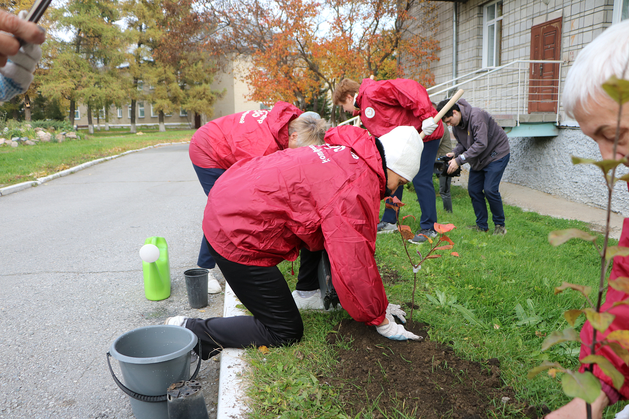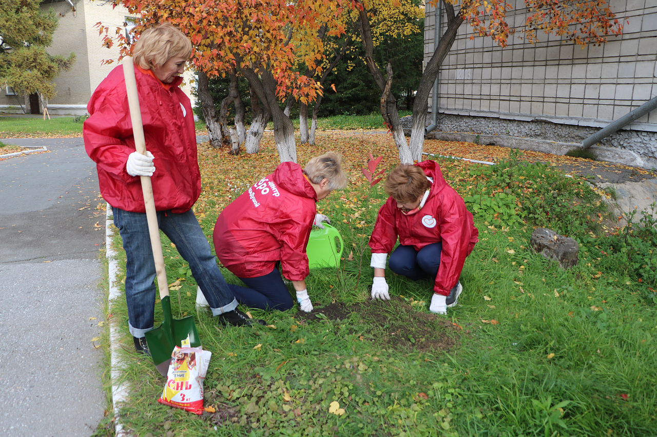 В ходе Декады пожилого человека волонтёры высадили яблоневую аллею. Мероприятие прошло на территории Новосибирского дома ветеранов.