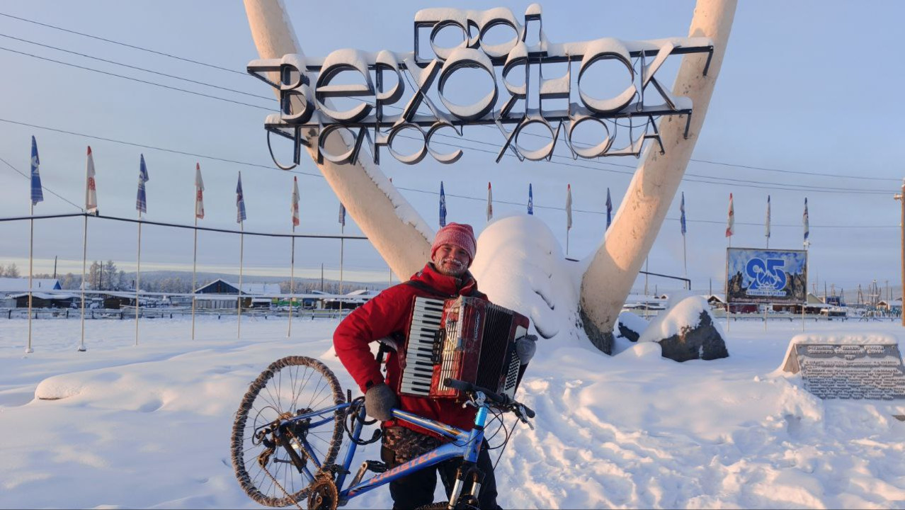 22-летний путешественник Клим Калужских передвигается по России на велосипеде и с аккордеоном. 31 января 2025 года он выехал из Новосибирска в якутский город Верхоянск. И ровно через год прибыл в точку назначения. О ночлегах в снегу и аномальных морозах во время дороги он рассказал Горсайту.