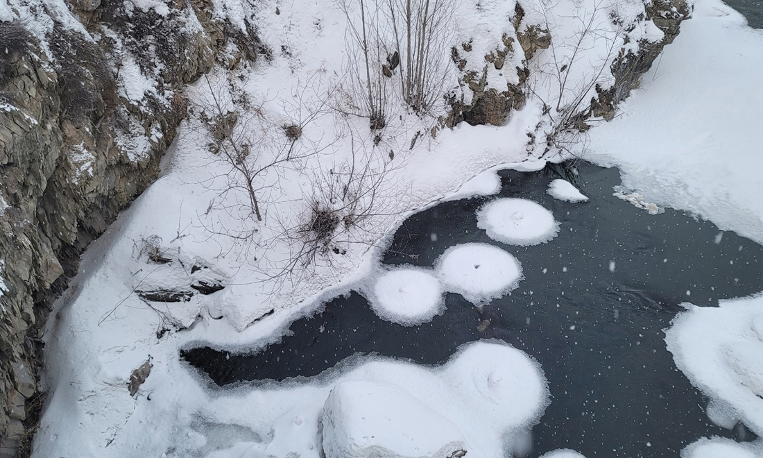 Необычное природное явление также называют блинчатым льдом. Оно происходит во время ледостава, когда температура воздуха на улице повышается практически до нуля градусов с более холодной.