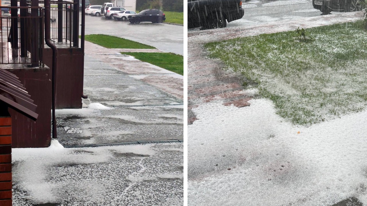 В последний рабочий день уходящей недели на город обрушился мощный ливень с градом. Белые горошины засыпали дороги и тротуары, словно в город пришла зима. Фото погодной аномалии горожане делятся в соцсетях.