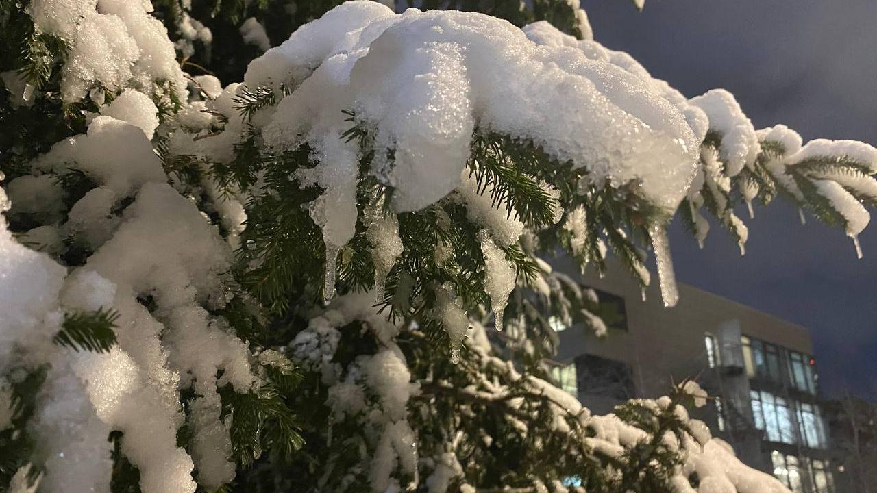 Ночью в городе прошёл небольшой снег, местами умеренный. Днём осадки усилятся, возможны метели. Ветер юго-западный, со скоростью 6-11 м/с, местами до 16 м/с.