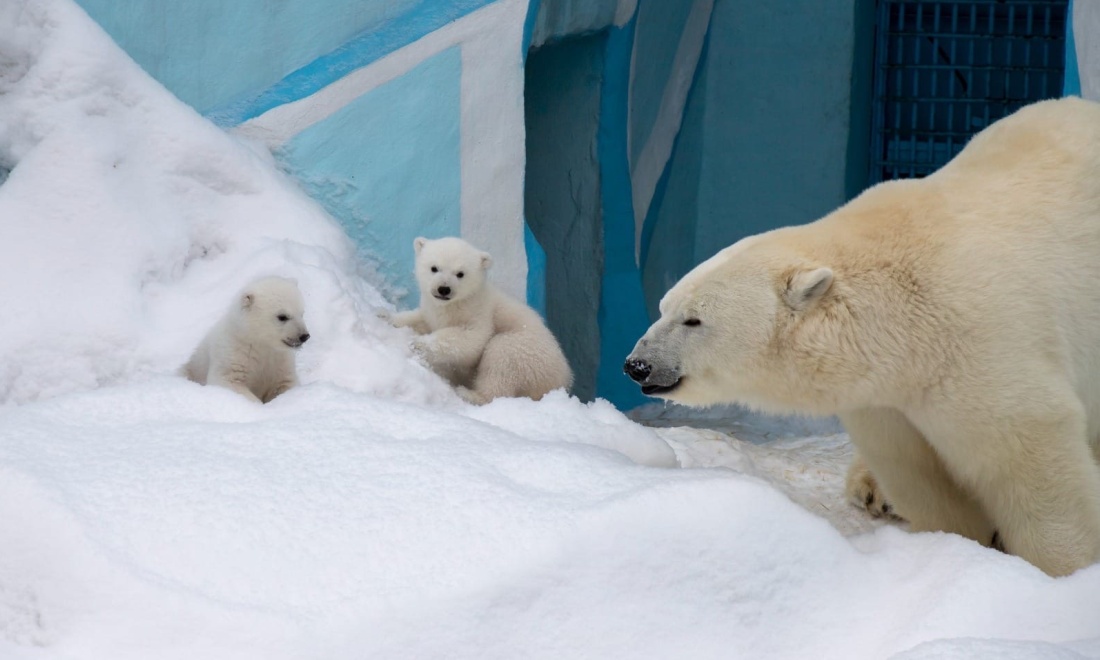 Напомним, малыши появились на свет 16 декабря прошлого года, однако первые дни их жизни остаются тайной даже для сотрудников зоопарка: маму-медведицу в этот период стараются ничем не беспокоить. Герда ‒ очень заботливая мама, поэтому первое время малыши находятся только в ее берлоге. Только недавно они стали показываться на пороге, и вот, почти трехмесячные, вышли на свою первую прогулку.